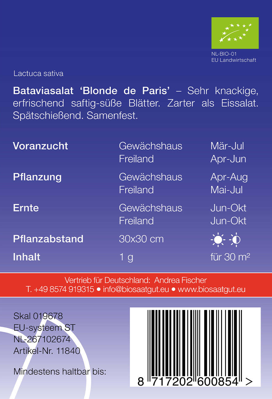 Bataviasalat Blonde de Paris | BIO Eissalatsamen von De Bolster [MHD 12/2025]