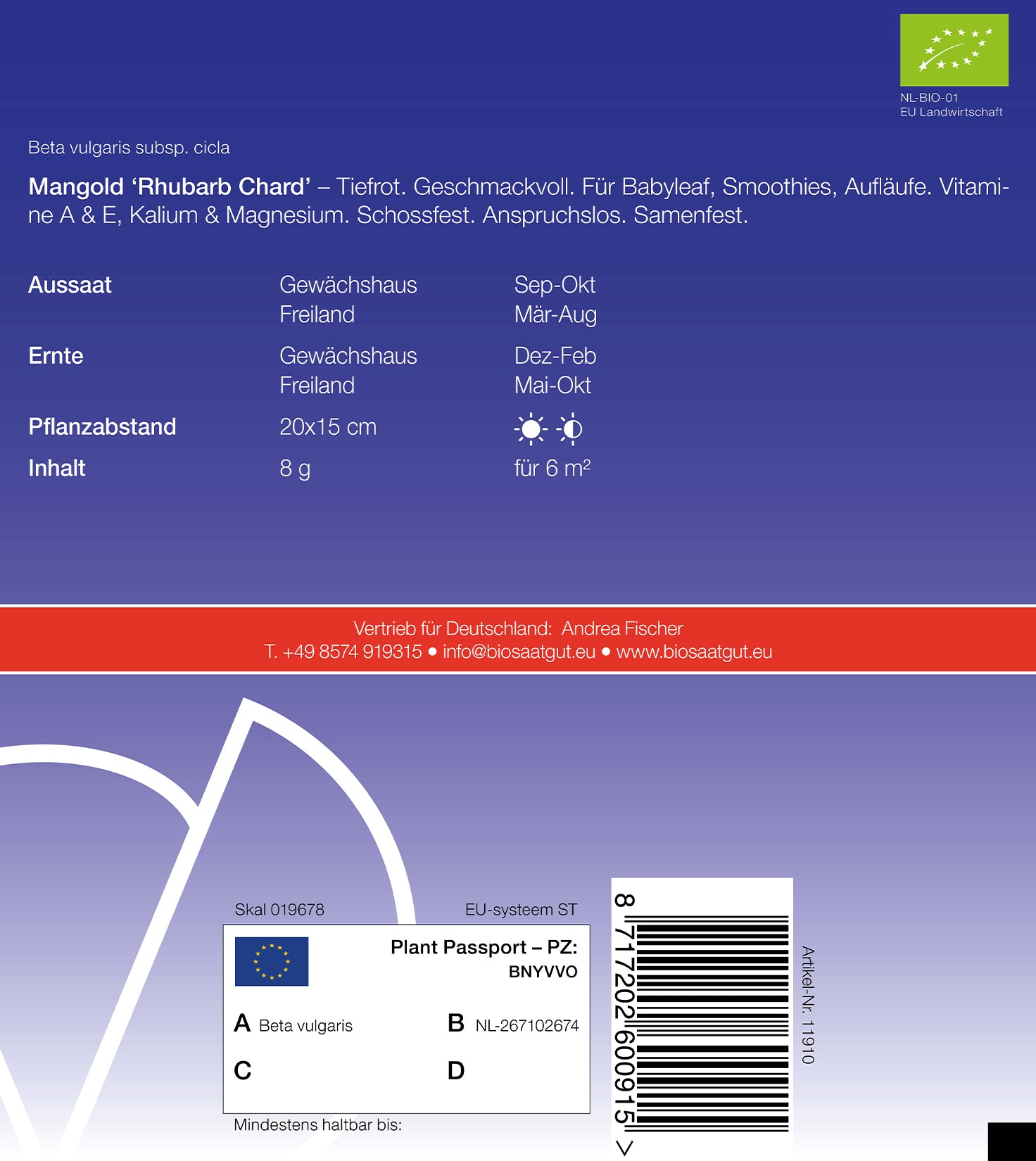 Mangold Rhubarb Chard | BIO Mangoldsamen von De Bolster [MHD 12/2025]