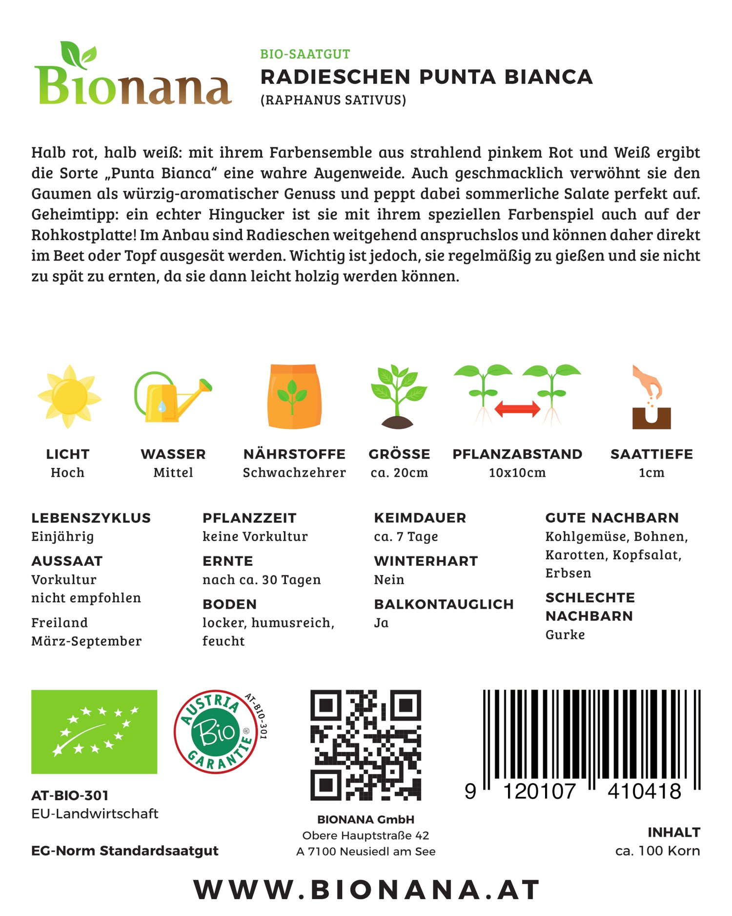 Radieschen Punta Bianca | BIO Radieschensamen von Bionana [MHD 12/2024]