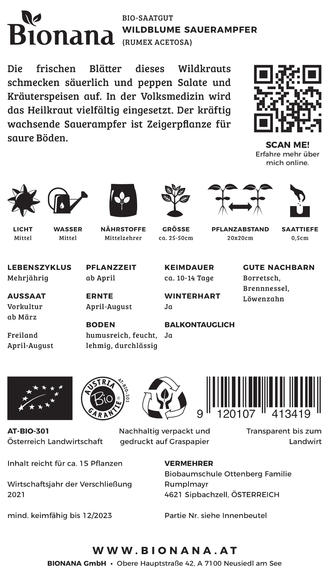 Wildblume Sauerampfer | BIO Wildblumensamen von Bionana [MHD 12/2023]